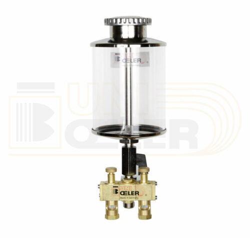 De oliedruppelaar Type MTM, geproduceerd door de gerenommeerde fabrikant UNI-Oeler, is vervaardigd uit hoogwaardig messing en uitgerust met een regelspil voor een uiterst nauwkeurige instelling van de druppeldosering. Dankzij de geïntegreerde afsluitfunctie kan de olietoevoer onmiddellijk en handmatig worden onderbroken.