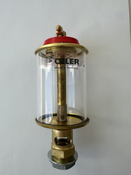 Oliedruppelaar type UNI volgens DIN 3401, vervaardigd uit gebeitst messing en voorzien van een regelspil voor een uiterst nauwkeurige instelling van de druppeldosering. De toevoer kan onmiddellijk worden onderbroken (instant cut-off). Uitgerust met een klapdeksel voor eenvoudige bijvulling en een cilindrisch kijkglas voor een duidelijke visuele controle van het druppelgedrag. Leverbaar met cilindrisch glas in acrylglas of mineraalglas*, afhankelijk van de toepassing en temperatuurvereisten.